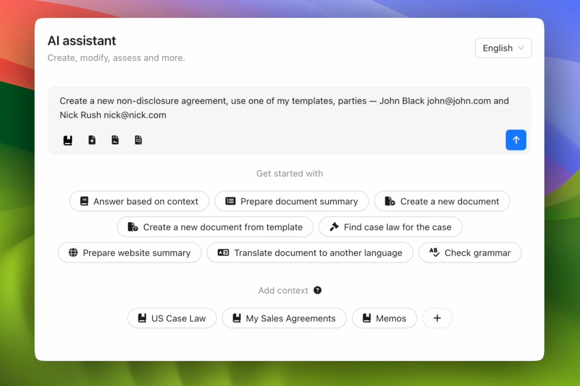 This component enables communication with Sendforsign AI to create document templates, correct document errors,