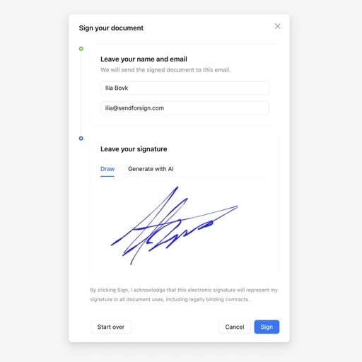 E-sign any document right in your browser, including Word documents and PDFs.