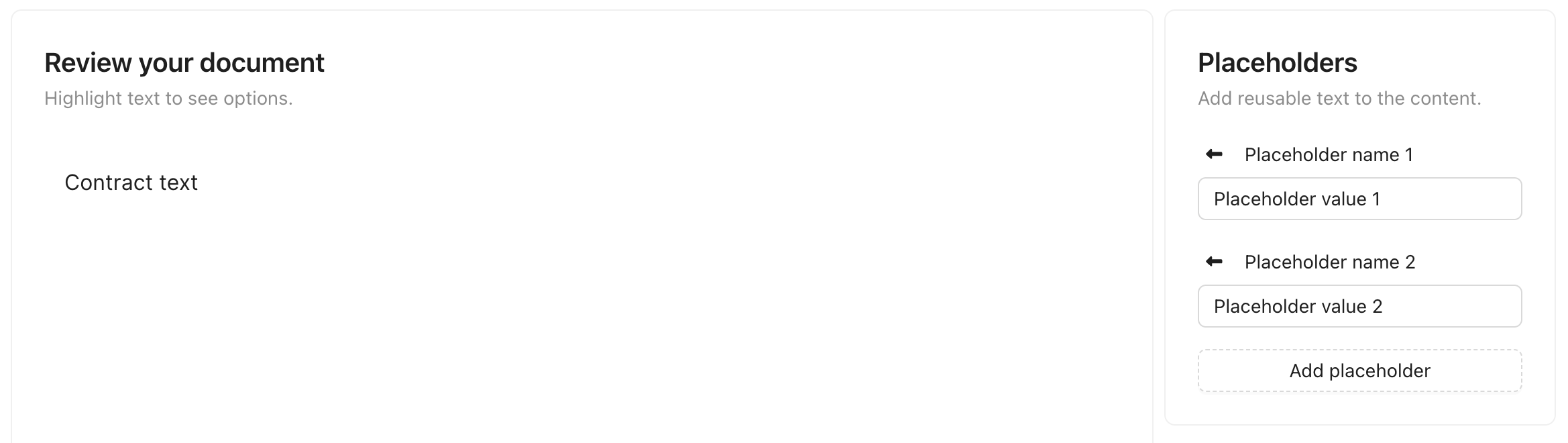 Awesome, you’ve just created your document and even added two placeholders to it. To view the document, use the Contract Editor component and enter the Contract Key you’ve just received as acontractKey property for the component.